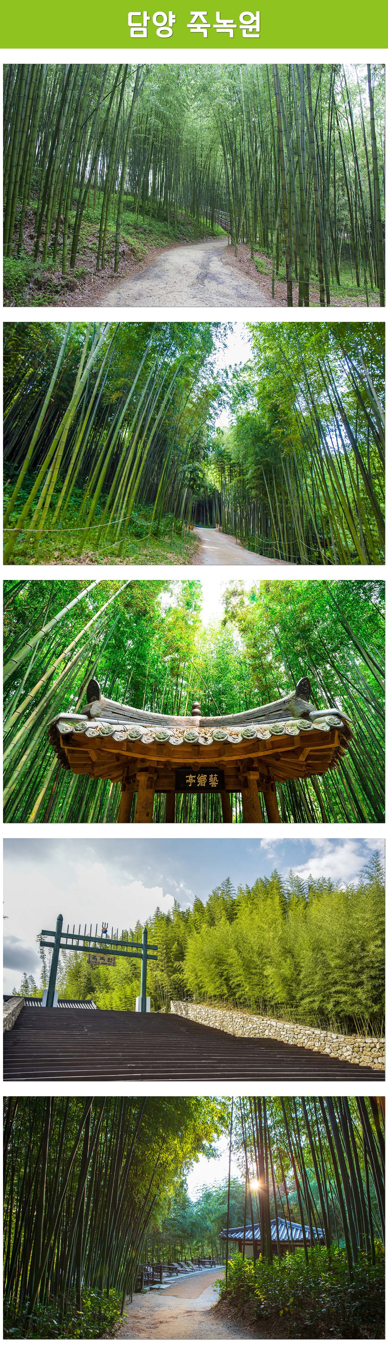 담양군의 성인산 일대 16만 평방미터에 조성된 대나무 숲입니다. 약 2.2km의 산책로가 조성되어있고 전망대에서는 300년 넘은 고목들을 관람할 수 있습니다.